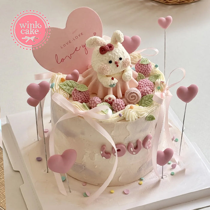 Pink cartoon bunny birthday cake cute cake WinkCake