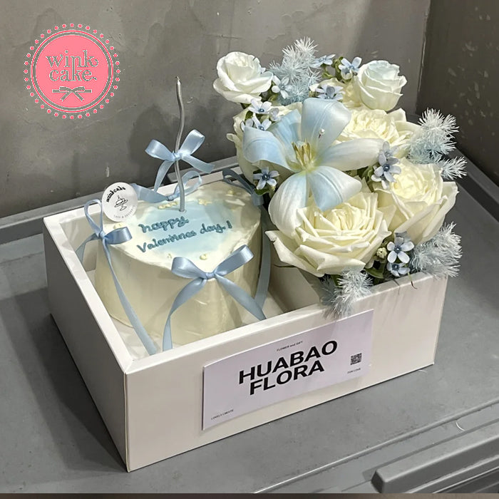 Bánh hình trái tim màu xanh, bánh sang trọng, bánh sinh nhật, hộp quà hoa