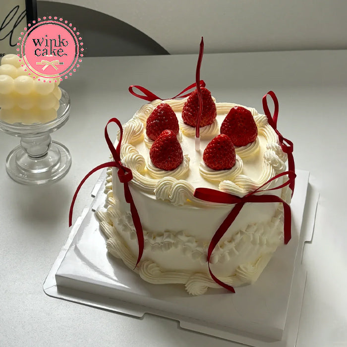 Bánh dâu tây trang trí bằng ruy băng đỏ